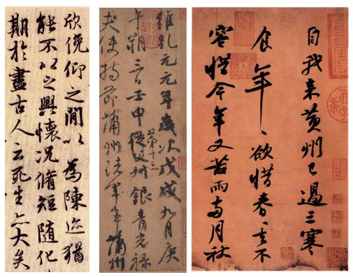 行書:馮承素摹《蘭亭序》、顏真卿《祭侄稿》、蘇軾《黃州寒食詩帖》、趙孟頫《洛神賦》、米芾《蜀素帖》。