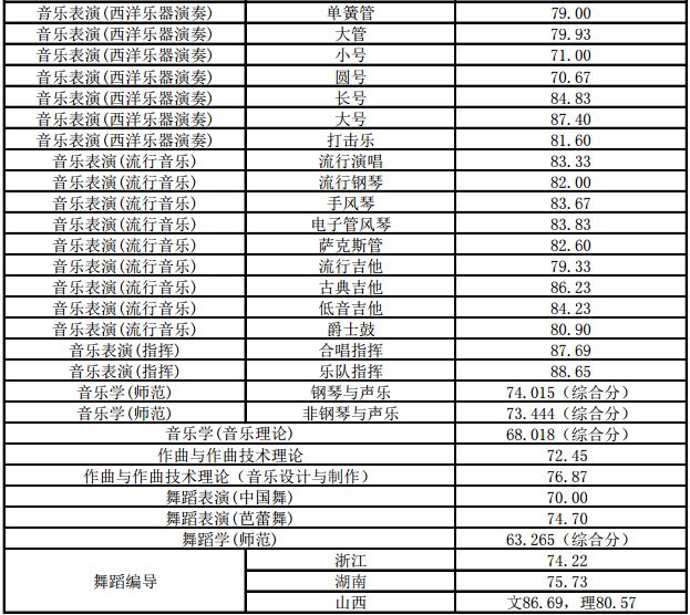 浙江音樂學院2018年全日制本科招生專業(綜合)錄取最低成績
