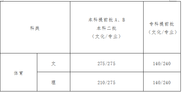 高水平運(yùn)動隊考生高考文化成績控制分?jǐn)?shù)線:文史441分,理工358分;對于少數(shù)體育專項測試成績特別突出的高水平運(yùn)動隊考生,文化成績控制分?jǐn)?shù)線:文史286分,理工232分。