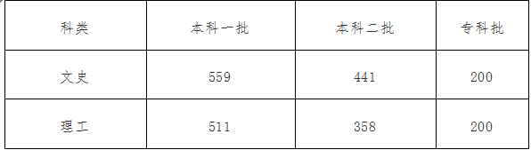 各批各類錄取控制分?jǐn)?shù)線如下: