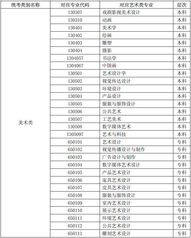 注:本對應表供高校選擇使用我省藝術類省統考成績時參考。如高校相關招生專業因