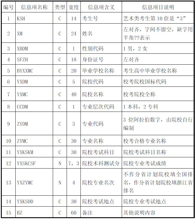2017 年浙江省藝術類專業校考合格考生名單數據庫結構