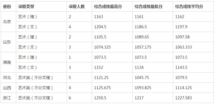 注:(1)實行非平行志愿投檔的省份,對于投檔考生根據我校在該省份的招生計劃按照考生綜合成績從高到低擇優錄?。ㄎ睦矸挚浦贫ㄓ媱潝档氖》荩睦砜瓢凑照猩媱潝捣謩e排隊;文理不分科制定計劃數的省份,文理科一起排隊)。綜合成績=高考文化課成績+(美術類省級統考成績/美術類省級統考滿分)×750。綜合成績相同的考生,優先錄取高考文化課成績高的考生。