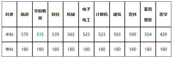 | 科類 | 本科一批 | 本科二批 | 本科三批 | 專科 |