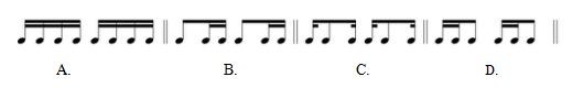 請聽音響(播放兩遍),選擇與所聽內容相符的節奏型組合( )