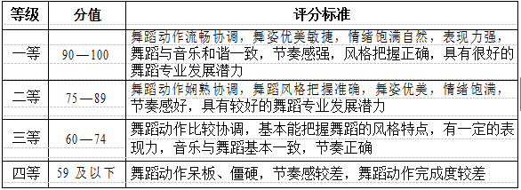 考查考生身體協調性、舞蹈表演基本素質和對舞蹈作品的表現力,要求考生能夠準確把握舞蹈作品基本韻律和風格特點,具備舞蹈的身體素質、技術、情感和形象表現力。