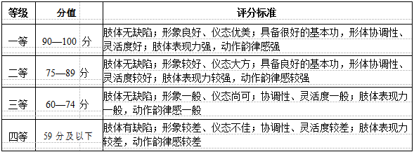 考生表演自選舞蹈、戲曲身段、武術、體操等形體片段均可,考試時間 2 分鐘以內。