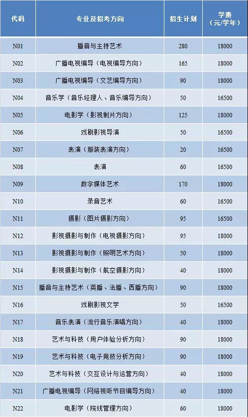 中傳南廣學(xué)院2018年藝術(shù)類招生計(jì)劃及學(xué)費(fèi)標(biāo)準(zhǔn)