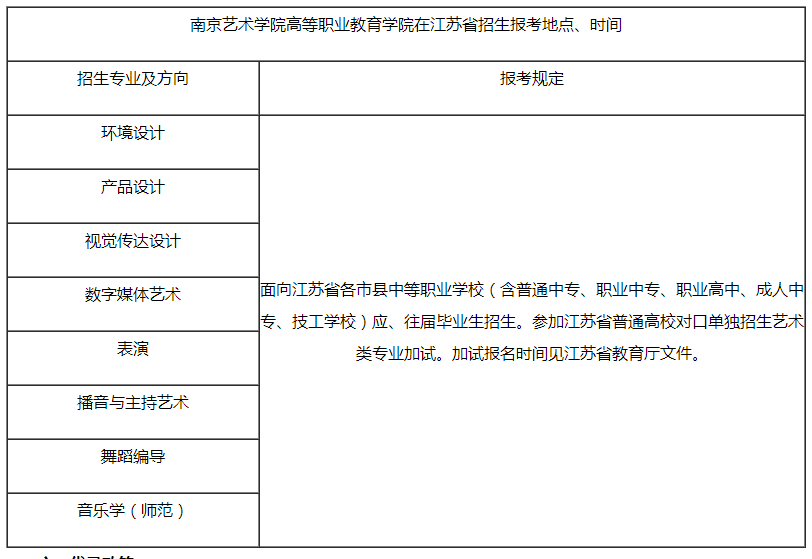 ①我校高等職業教育學院各專業只面向江蘇招收對口單招考生,考生只需參加江蘇省對口單招藝術類相關專業統考。