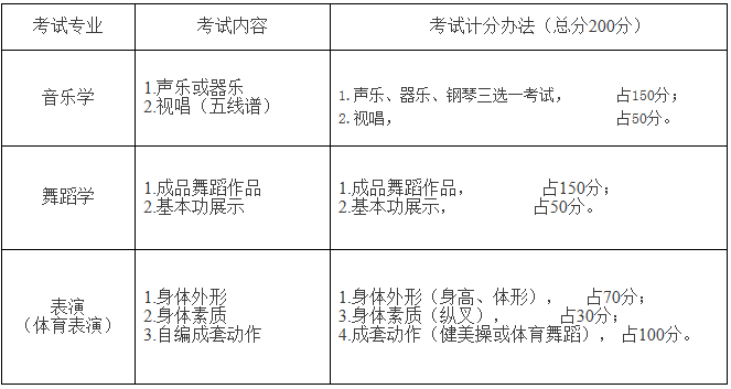 2018年藝術類專業(yè)校考考試內(nèi)容、計分辦法: